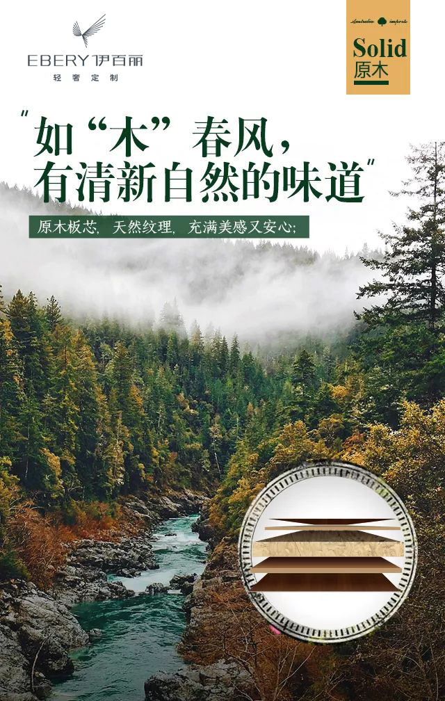 以优质进口松木为基材,原木板芯更安心;天然纹理保持原木的天然纹理,自然,充满美感。