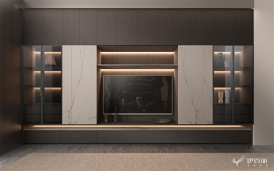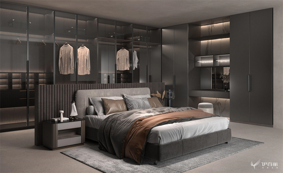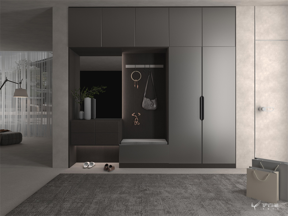 一门到顶设计,一气呵成,简洁霸气。深枪灰玻璃门搭配富有金属感的进口PET拉丝门板,带给人前卫、不受拘束感的同时更添通透性。