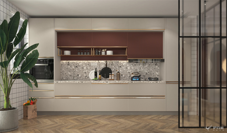 厨房空间以莫兰迪白(格调白&象牙白)作为主色彩,圈画出宁静、亲和的氛围,将精致的生活格调缓缓铺开。“四方食事,不过一碗人间烟火。”
