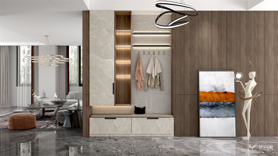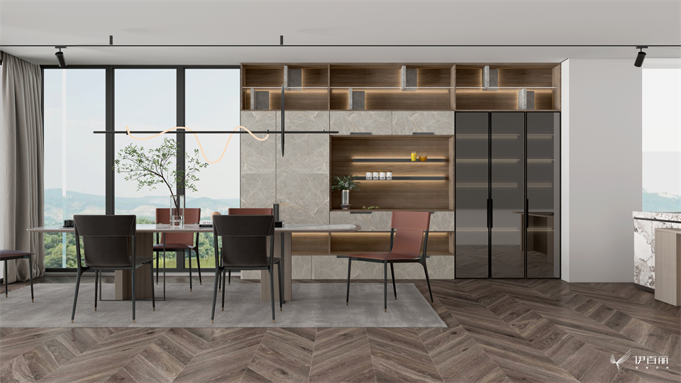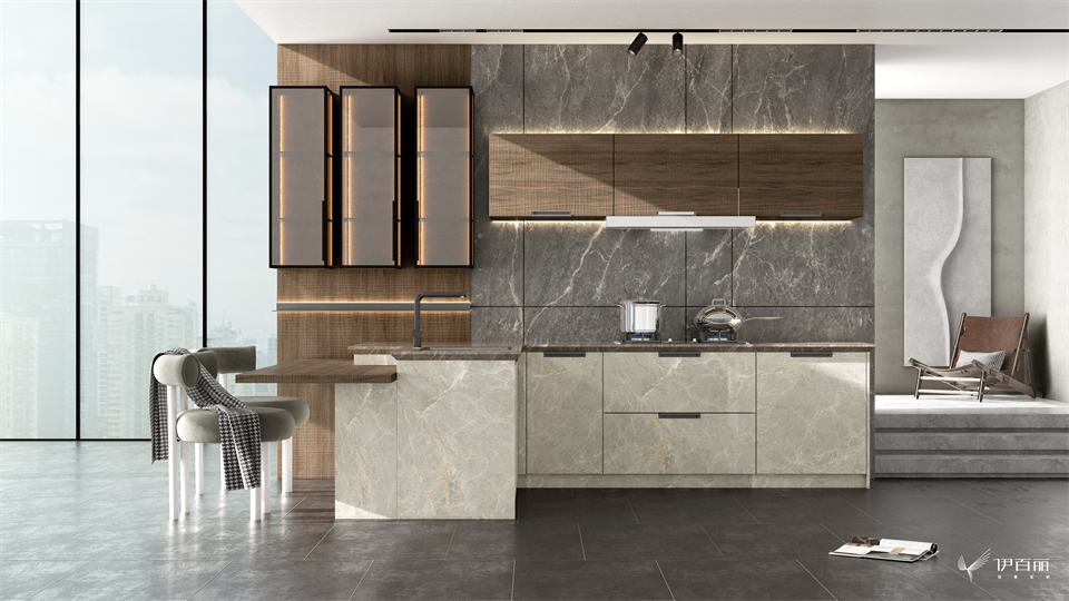 自带高级感的凤凰木带来的温润质感,搭配肤哑UV岩板饰面“银龙玉”,共同营造高级且适用的空间氛围。木层板+层板灯工艺让光影流转在生活的每寸空间,有意想不到的灵动空间效果。看似妙手偶得,实则如琢如磨!