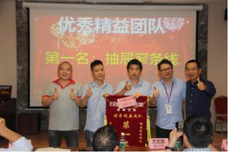 九大部门进行项目总结,分别是:品管部、抽屉窄条线、柜身车间、门板车间、PMC部、配套部、采购部、销售中心和研发部。在过去的时间里皆是积极推动精益项目的进程,在此各自总结期间的成败得失,分享成果的喜悦。