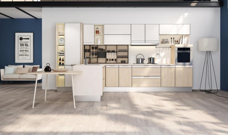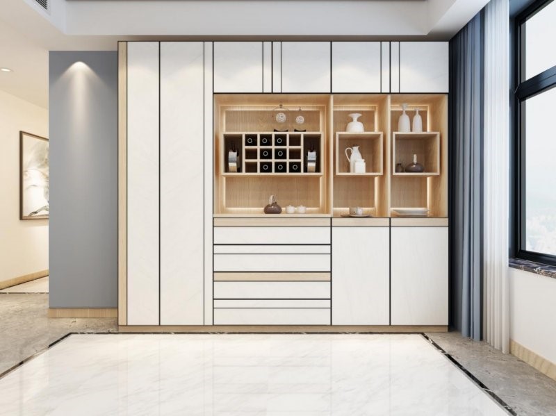 亚博一直主打“时尚家居”,本次参展带来了时尚新中式“唐风汉韵”全系列产品。黑色氧化砂的硬朗线条,配合白色岩石纹的雪舞江山柔美面材,勾勒出一幅中国泼墨山水画的意境,再加以冰河纹水曲柳的浅木色的镶嵌,仿佛身临其境,眺望壮丽山河的静美园林,既留住了古色韵味,又剔除了繁琐。黑色线条勾勒的拉手和线条,使得色彩搭配十分契合,给整体空间添加了更加明朗的轮廓感,并起到了整体延伸的效果,将中式韵味演绎得淋漓尽致。