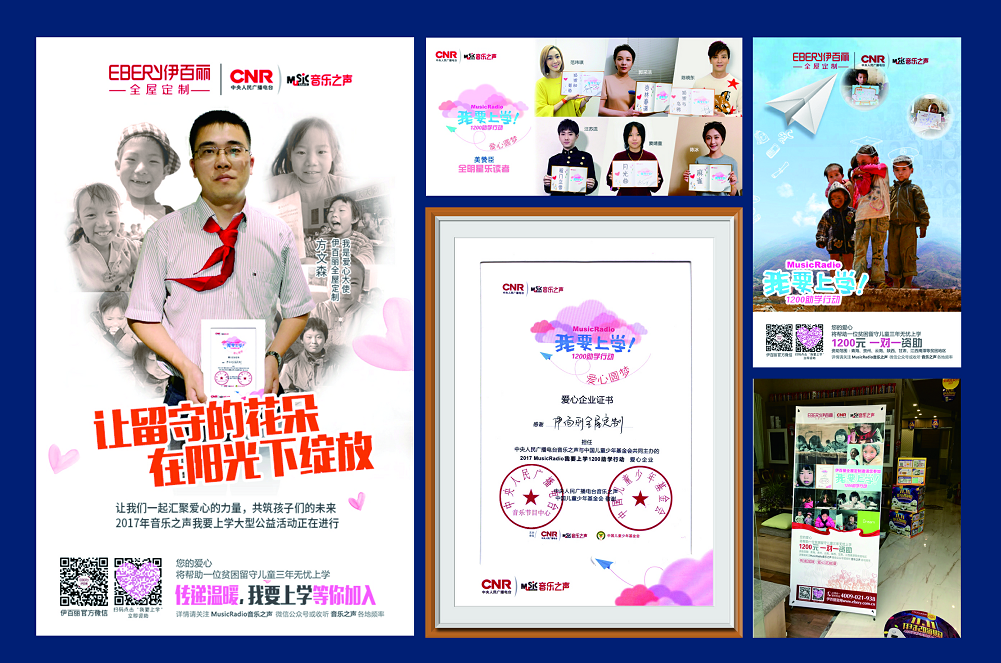 公益活动 我要上学 亚博全屋平台凭借良好的品牌影响力以及领导人的爱心支持,成为由中央人民广播电台MusicRadio音乐之声、中国儿童少年基金会主办的“我要上学”公益活动的爱心企业,连续多年对留守儿童资助,帮助他们迈入知识的殿堂!