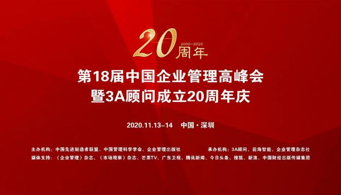 2020年11月13日-14日,为期2天的“第18届中国企业管理高峰会暨3A顾问成立20周年庆”在中国深圳圆满结束,作为受邀嘉宾,亚博全屋平台总经理黄志存先生携公司管理层一行出席本次盛会。